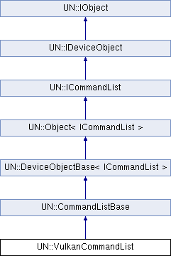 Public Member Functions inherited from UN::DeviceObjectBase< ICommandList > | |